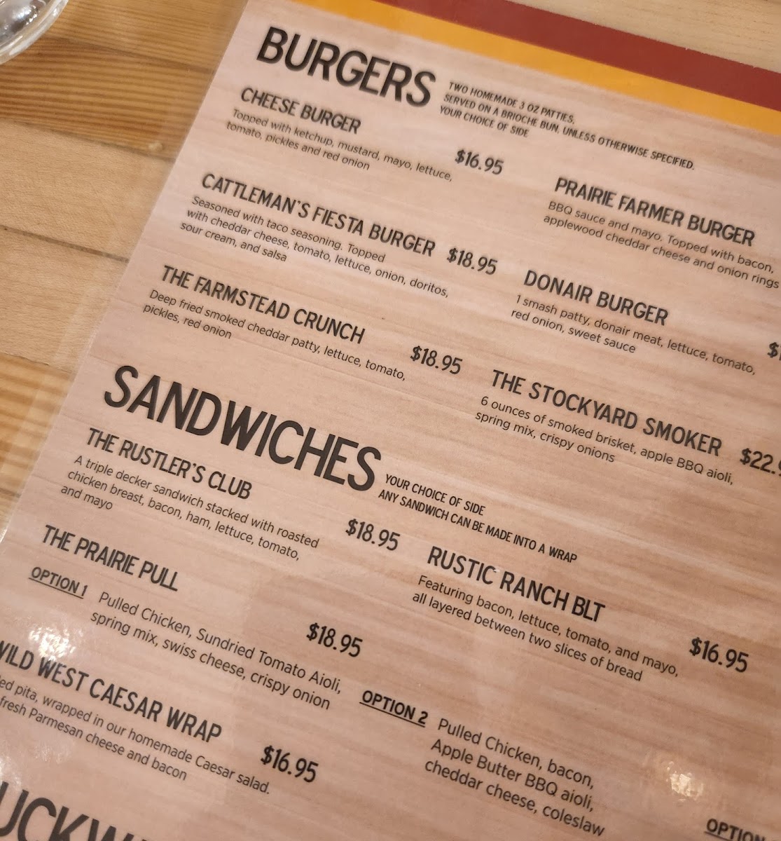 Prairie Fire Bar & Cafe Menu